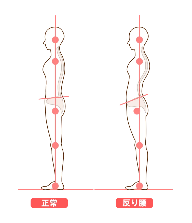 反り腰とは、骨盤が前に傾き、腰椎(腰の骨)のカーブが過剰になっている状態を指します。